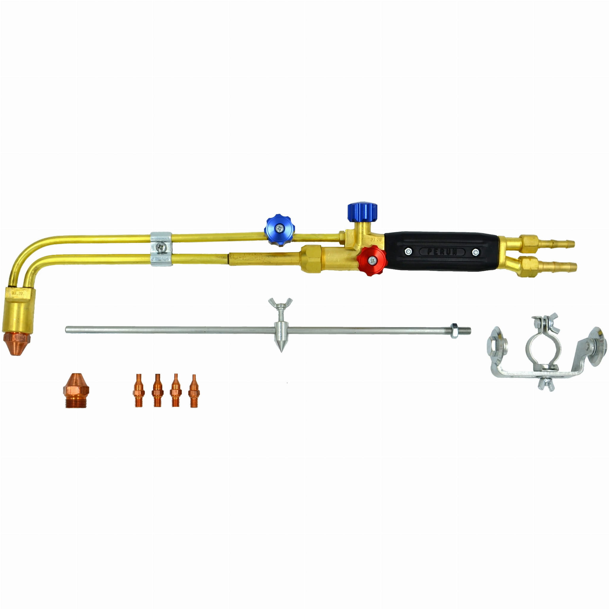Palnik do cięcia PC-211A/Y11 firmy PERUN to profesjonalne narzędzie acetylenowo-tlenowe z systemem mieszania inżektorowym przeznaczone do cięcia konstrukcyjnych stali węglowych i niskostopowych o grubości 3-300 mm. Palnik wyposażony jest w wygiętą nasadkę do cięcia pod kątem 90°, dysze typu pierścieniowego oraz zawór tlenu tnącego z pokrętłem. Umożliwia cięcie we wszystkich kierunkach, w pionie i pod kątem 45° (ukosowanie). Dzięki dobranym dyszom tnącym i podgrzewającym zapewnia wysoką wydajność cięcia przy optymalnym zużyciu gazów.