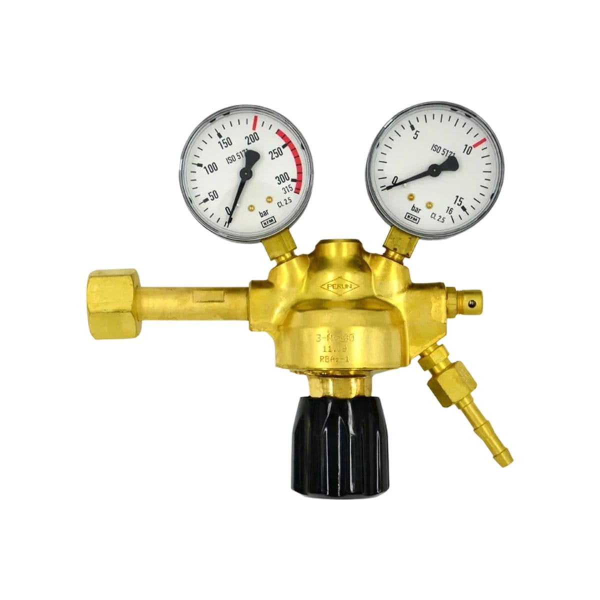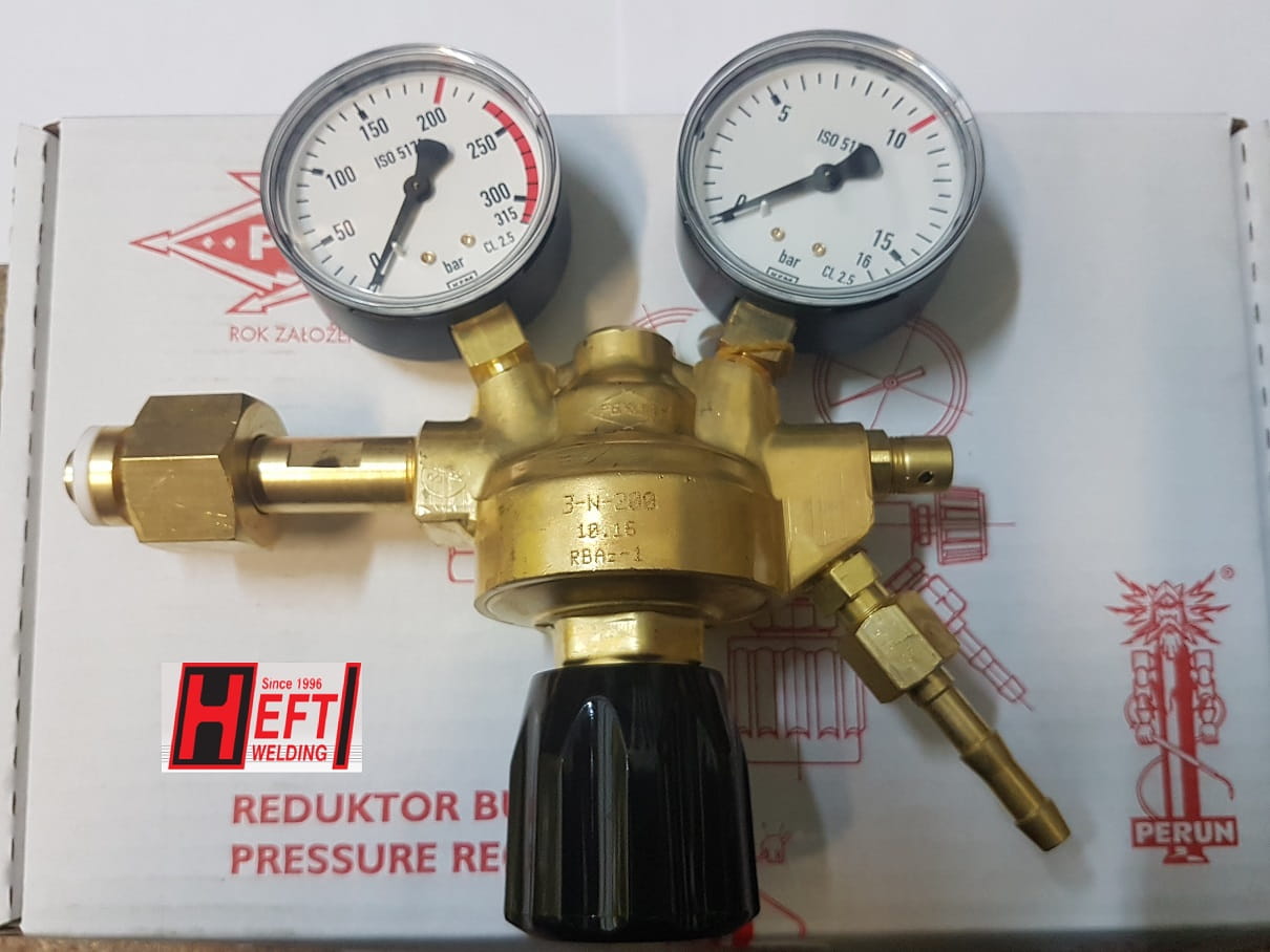 Reduktor butlowy jednostopniowy RBAz-1 do azotu firmy PERUN to produkt renomowanego polskiego producenta sprzętu gazowego. Jest to reduktor bezdźwigniowy o zmiennej regulacji ciśnienia wylotowego, służący do obniżania ciśnienia azotu pobieranego z butli do wymaganego ciśnienia roboczego. Zapewnia samoczynne utrzymanie ciśnienia na stałym poziomie niezależnie od zmian ciśnienia wlotowego. Znamionowe ciśnienie wlotowe wynosi 200 bar, a zakres ciśnień wylotowych 0,5-10 bar. Przepustowość nominalna to 30 m³/h, co sprawia, że jest odpowiedni do zastosowań przemysłowych wymagających większego przepływu gazu.