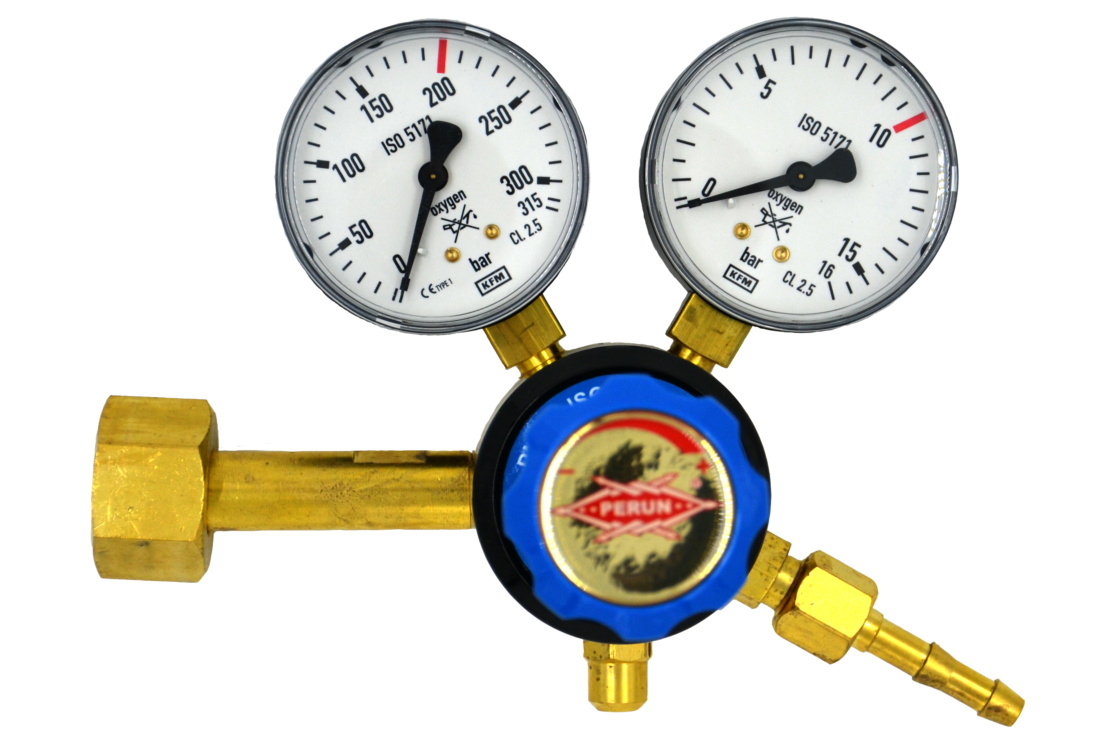 Reduktor butlowy jednostopniowy SLRBT-1 "SLIGHT" do tlenu firmy PERUN to produkt renomowanego polskiego producenta sprzętu gazowego. Jest to reduktor bezdźwigniowy o zmiennej regulacji ciśnienia wylotowego, służący do obniżania ciśnienia tlenu pobieranego z butli do wymaganego ciśnienia roboczego. Zapewnia samoczynne utrzymanie ciśnienia na stałym poziomie niezależnie od zmian ciśnienia wlotowego. Znamionowe ciśnienie wlotowe wynosi 200 bar, a zakres ciśnień wylotowych 0,5-10 bar. Przepustowość nominalna to 30 m³/h, co sprawia, że jest idealny do typowych prac spawalniczych.