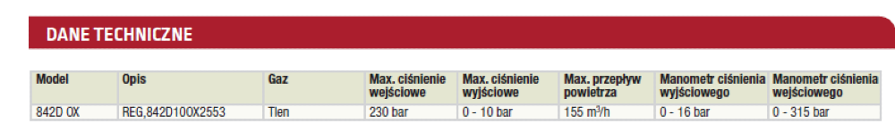• Maksymalne ciśnienie wejściowe 230 barów